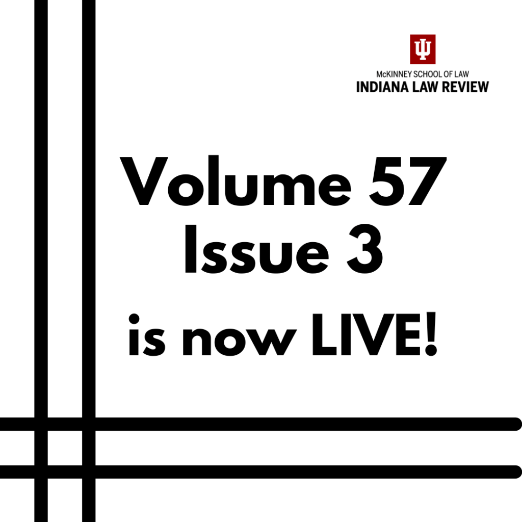 We are excited to announce the official publication of Volume 57, Issue 3 at https://mckinneylaw.iu.edu/practice/law-reviews/ilr/contents.html?Vol=57%2C3. Topics range from several tributes for Judges, medication abortion, and extended-stay motel guests.